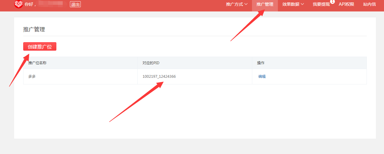 点击推广管理——创建推广位
