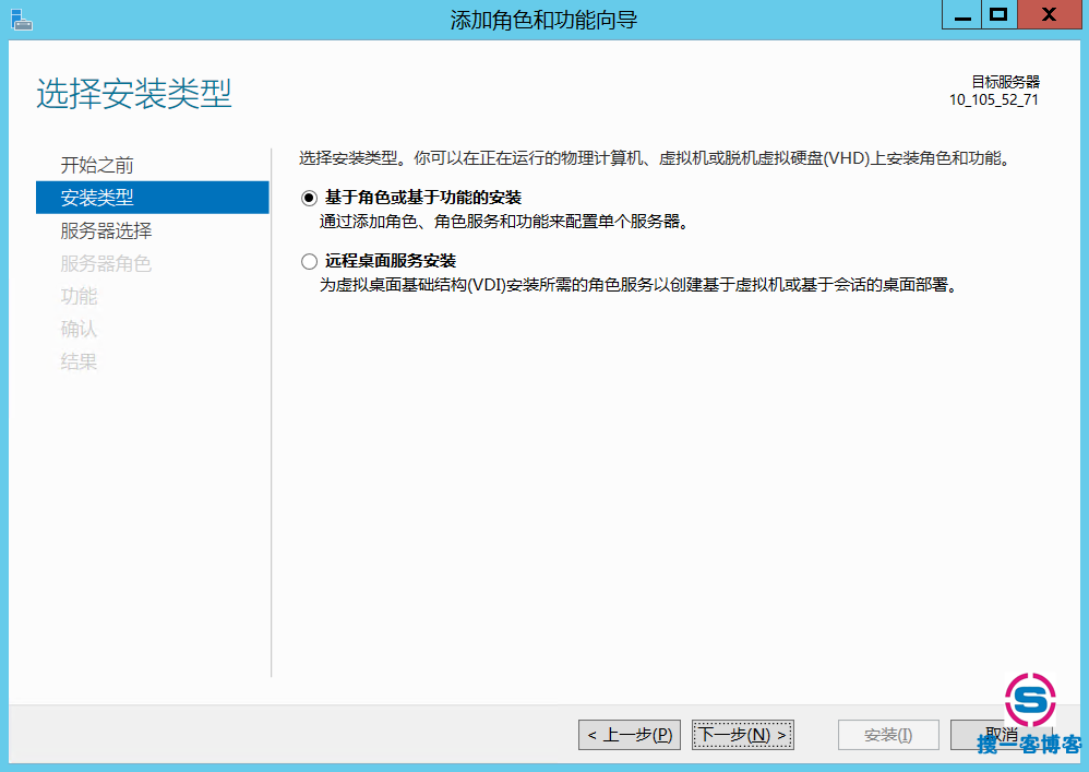 选择“基于角色或基于功能的安装”,单击“下一步”