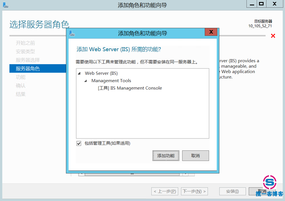 单击“添加功能”会弹出“添加角色功能”的小窗口