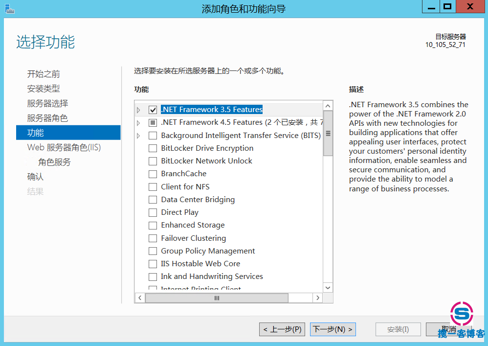 选择要添加的功能,这里按需添加,我这里选择了.NET 3.5,再单击 “下一步”