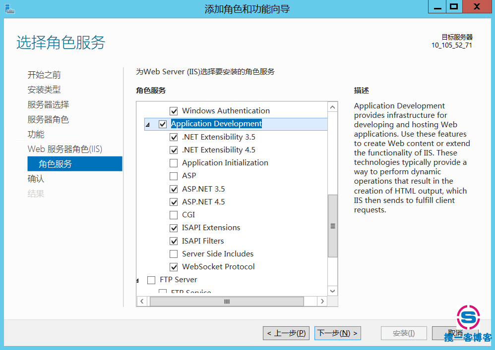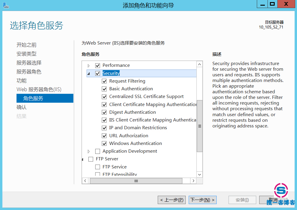在这里添加需要的角色服务,同样也是按需添加,我这里自己选择了一些,如果不需要的话直接单击“下一步”