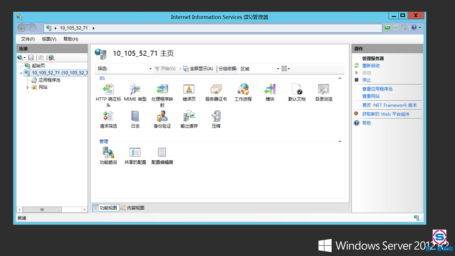 那我们点开IIS8.5的控制面板看一下,还是原来的配方还是熟悉的味道