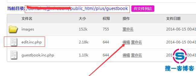 进入到这个目录之后找到我们的程序的路径:目录include/taglib/flink.lib.php文件,点击编辑,如图所示:
