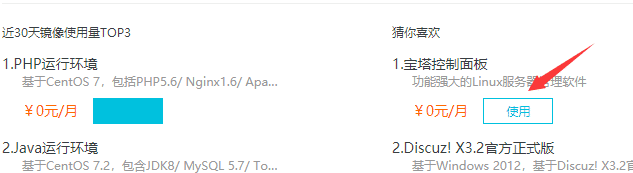 在镜像市场中,我们选择使用【宝塔控制面板】进行环境安装。