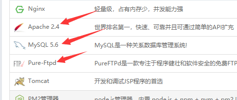 分别安装Apache 2.4、MYSQL5.6、Pure-Ftpd、PHP-5.6、phpMyAdmin 4.8这几款软件;