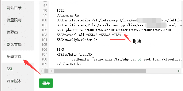 将这段代码最后面的 -TLSv1 删除,然后保存即可。