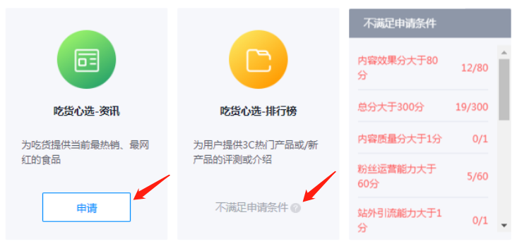 若渠道申请被驳回,则各位内容创作者可点击【!】了解原因,并根据实际情况选择是否再次申请;部分渠道申请包含考试环节,内容创作者在审核通过后,可以在申请入口跳转至考试页面。考试通过即可获得对应渠道权限。