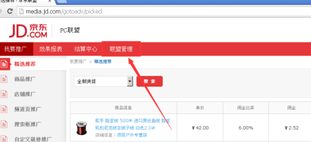 登录好以后,我们来到京东联盟,我要推荐页面,我们点击联盟管理