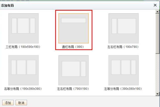 一共有12种布局模板供大家选择。大家可以点击【添加】,该布局将显示在页面的最底部,如果必要需手动向上移动。