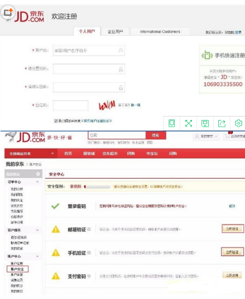 2、登录京东网页——注册京东账号:(首先您需要注册京东“个人账号”,拥有账号后才能进行下一步,如您已有个人账户则直接输入您的用户名密码登录即可)