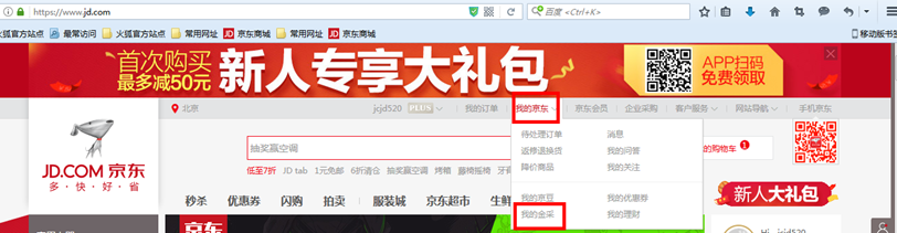 1、【京东商城首页】—【我的京东】—【我的金釆】;