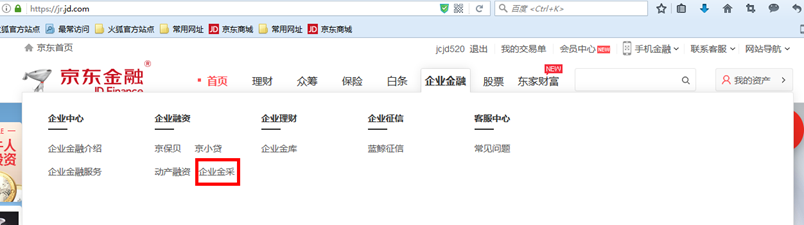 3、【京东金融首页】—【企业金融】—【企业金釆】;