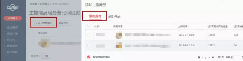 PS:商家也可通过【全部商品】入口搜索商品名称或SKU ID自主添加主推商品。