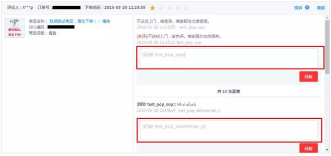 4.1功能路径:商家后台—商品管理—商品评价管理(新)--全部评价—点击评价后面的“投诉”入口,可对不合理评价进行投诉。