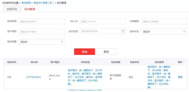 功能路径:商家后台—商品管理—商品评价管理(新)--投诉管理