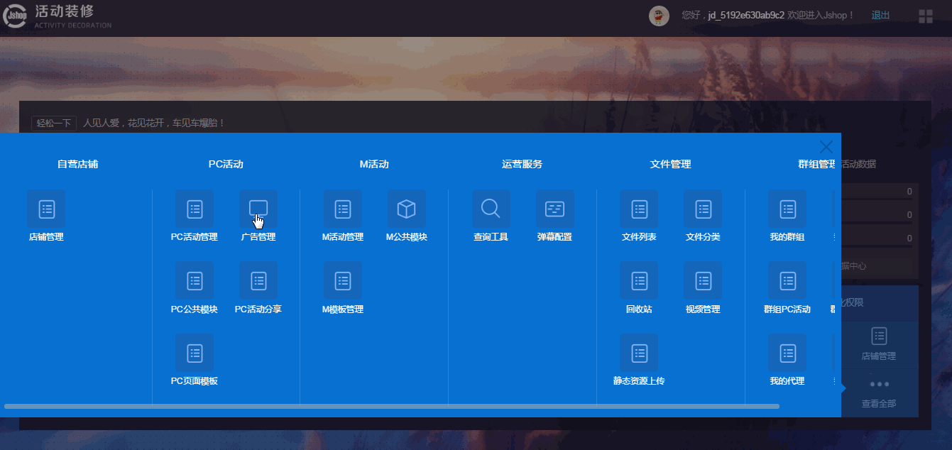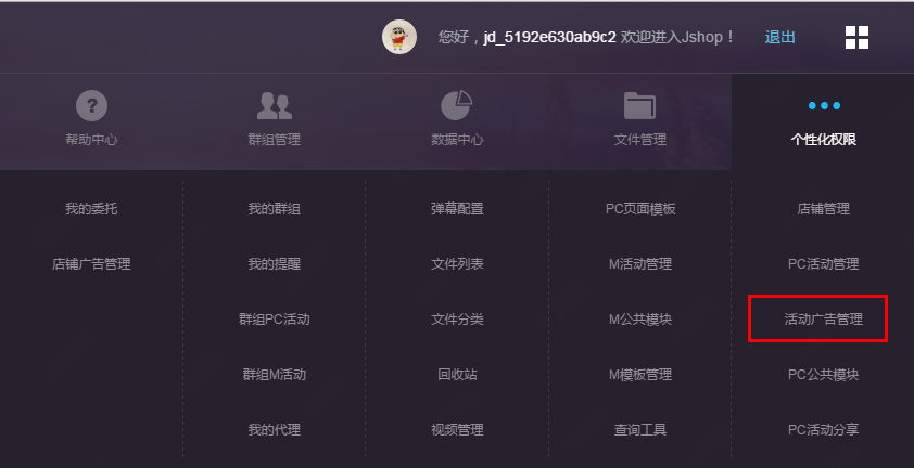 点击个性化权限—活动广告管理 (此权限需要联系管理员申请开通)