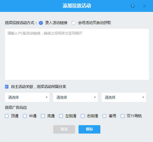 配置要投放的活动链接及活动所属分类及广告位类型。
