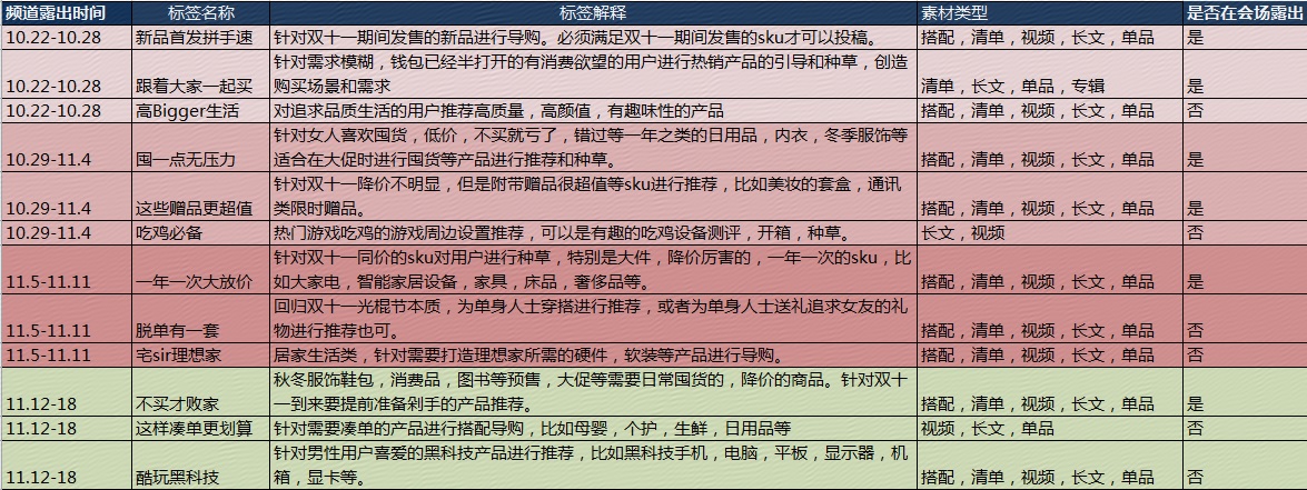 1. 10.17-10.22 11.11攻略会场的内容楼层,全量展示6个标签;