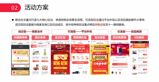 今年双十一期间,京东拼购玩将开启七大核心玩法。通过平台补贴和货品激励的方式,引流型玩法旨在提升分享概率;“成交型”玩法直接为商家发券以及拉动成交。