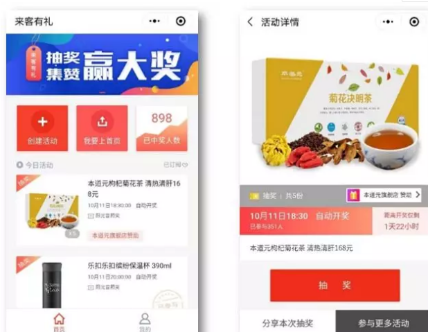 “来客有礼”小程序是京东金融出品的一款方便快捷地拉新促活、品牌营销工具,在全球10亿微信用户的巨大红利机会面前,为商家提供一个短平快的曝光、获客工具。用户通过抽奖、集赞、口令、优惠券等形式参与互动,并主动了解商家详情信息,引导用户进入商家店铺/小程序/公众号/微信个人号,促进用户增长、京东店铺粉丝活跃,提升品牌知名度,并带来销售转化。