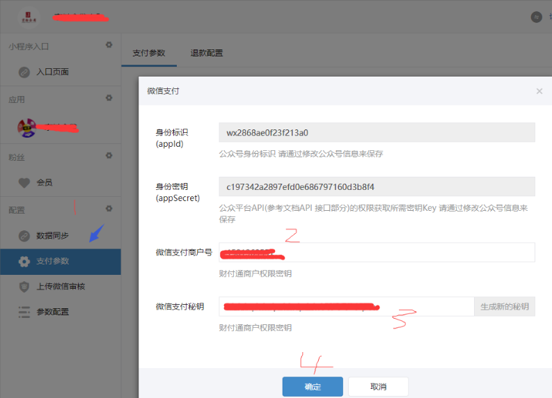 1.选择自己小程序—支付参数—修改—填写微信支付商户号和微信支付秘钥