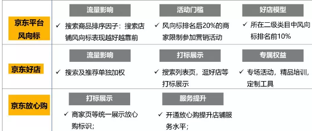 京东平台风向标数据表现优质的店铺(前10%)有机会得到京东平台官方认证。
