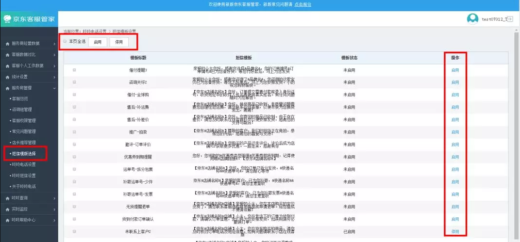 ? 开通服务:客服管家-咚咚电话/短信页面,一键启用服务
