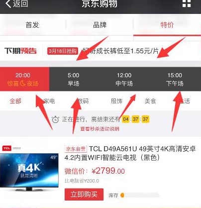不管中小店铺都要跟进京东运营或者让京东运营邀请你进入微信端部门的活动,确保你可以在618期间上心跳秒杀,该活动不是所有商品都适合,很多商品上了这个活动但是效果一般,所以建议你可以在微信端看下其他选手的资源产品卖的如何,在决定进行提报和参加。而且价格上要相对给力一些。