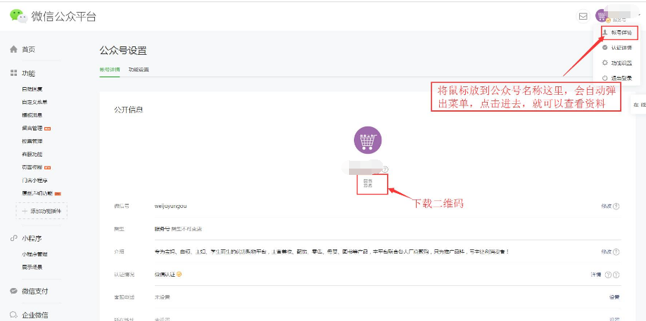 第五步、修改资料(资料在公众平台查看:https://mp.weixin.qq.com/)