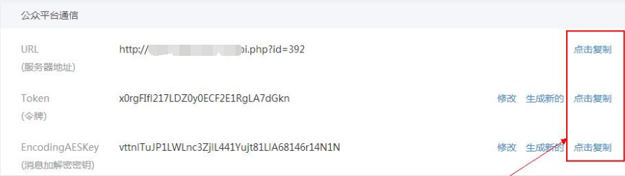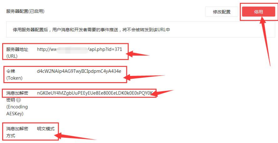 将【URL】、【Token】、【EncodingAESKey】填到哪下图相应的位置,然后点击【启动】