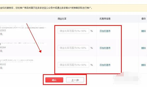 点击后这时会看到如下页面,按照提示给相应产品设置相应的佣金比例即可,相对简单且便捷。