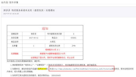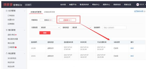 拼多多虚假发货违规申诉流程操作指南,注释:入口在商家后台—店铺管理—违规信息