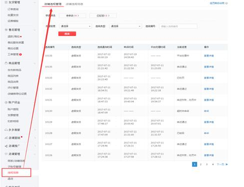 1.3 快捷搜索待处理的申诉记录:点击店铺违规管理顶部的快速筛选区域,即可快速的按条件查出对应的违规记录,如下:
