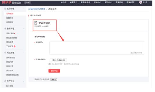 1.5 驳回后重新提交申诉:您可根据平台的驳回原因,进行针对性的信息补充,在当日20:00之前重新提交申诉材料。如下: