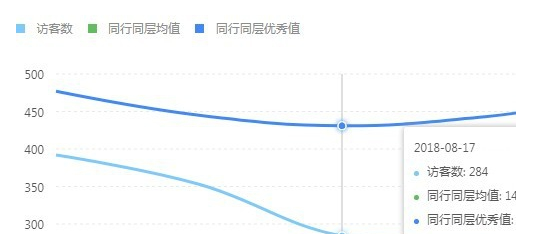 下方还有访客数、同行同层均值、同行同层优秀值对比图参看、可以看出自己店铺是否优秀处于什么位置。