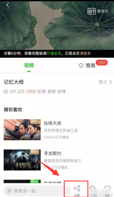 完美支持十二家主流视频APP 腾讯,优酷,土豆,芒果,爱奇艺,搜狐,乐视,AB站,风行,华数,PPTV 第一步: 打开爱奇艺客户端(其他客户端一样),选择要看的vip视频 第二部: 点击右下角分享给返利机器人 ,就会获得视频播放链接 图文教程