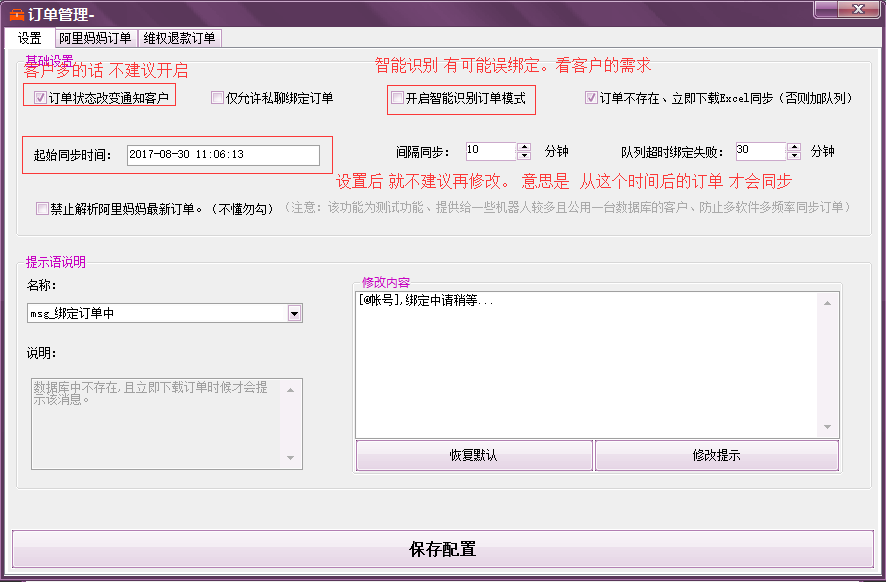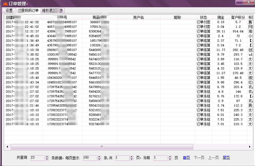 订单同步的列表,如果用户发送订单提示不存在,那么可在此处查看订单是否已经同步到本软件了。如果没有请等待软件同步!如果10分钟左右也没有出现订单,那么请去阿里妈妈后台查看 是否有此笔订单!