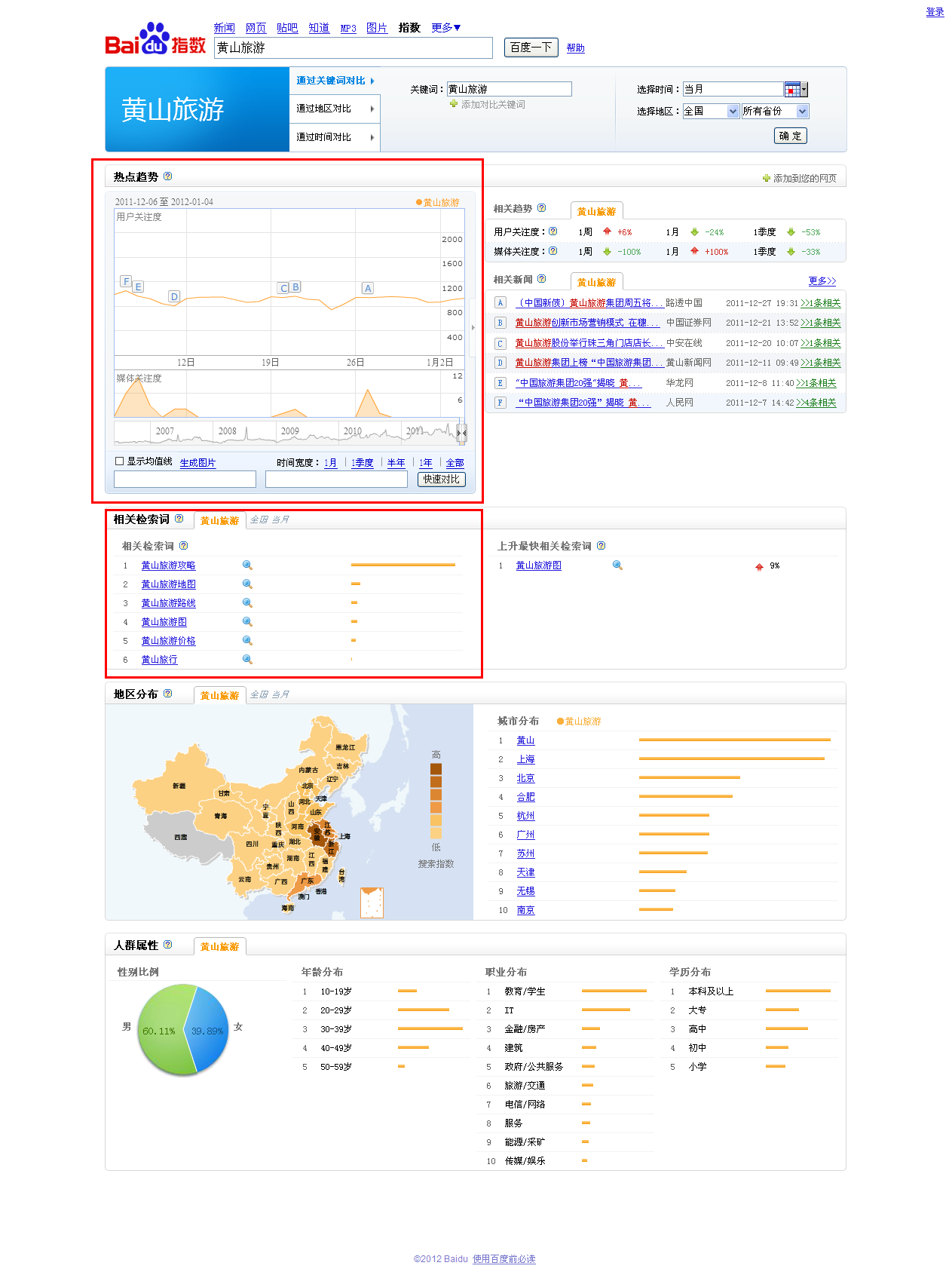 这基本上就是一个旅游类电子商务网站通过排名获得订单的典型案例。对于旅游类电子商务网站来说,对于搜索引擎的排名需求非常强烈,以“黄山旅游”为例,通过百度index可以看到,“黄山旅游”的日均搜索量在一千以上,并且从07年以来,一直保持增长的势头。