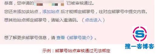 最近菁菁又发现了一个问题,很多资源方,在申请站点绑定后,会收到这么一个反馈,告知申请已通过,但是却又提醒还未添加站点,需要添加后才可以绑定熊掌号或者输入邀请码进行绑定其它站点。