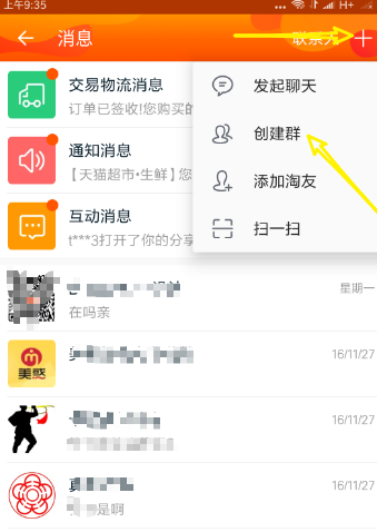 点击+号,然后点击创建群