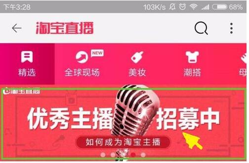 3、点击banner图上的主播招募申请直播