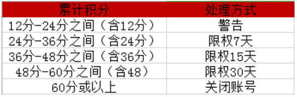 用户违规扣分将在该次扣分之日起一年后做对应清除处理(如2019年9月16日发生违规扣分,该笔扣分将在2020年9月15日24时清除),但因扣分达到60分或以上致使帐号关闭的除外。