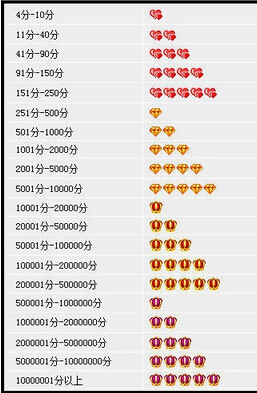 如果想要看到小号的信誉等级,那么点击信誉,你就可以看到有这样一张图弹出来,对照来看你就能知道该号的信誉等级是多少了。