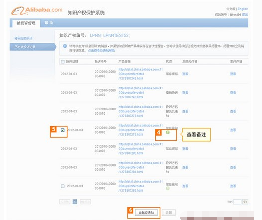 (2)勾选投诉记录,点击“发起反通知”。如下图: