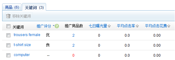 3、--为不能匹配和不能展示的关键词,建议移除或者添加匹配的产品