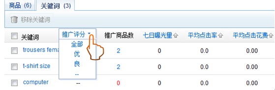 推广评分主要用于衡量您推广的商品在该关键词下的推广质量。目前推广评分分为:“优”、“良”、“--”三档。在关键词后即可查看。