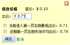 1、推广评分为优表示有资格进入搜索结果首页右侧位置,但是否实际进入,还要看您的出价是否有竞争力。出价后台会有提示语,如下图: