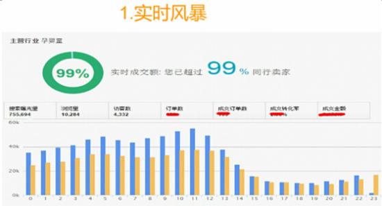透过实时风暴可以及时了解店铺流量变化,判断商品信息优化、营销活动等调整带来的直接效果。还可以在流量集中的时段调整客服工作时间及直通车投放时间。