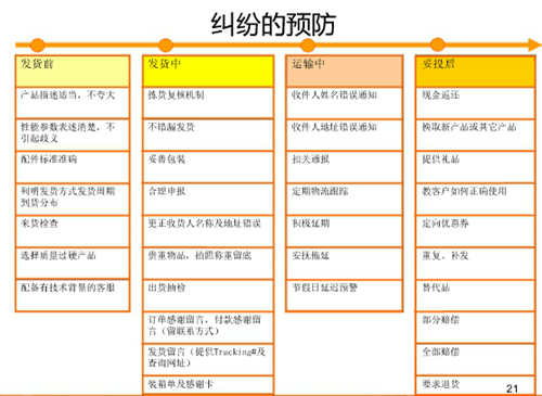 速卖通纠纷怎么处理?速卖通卖家应该明白,解决纠纷最有效的途径不是解决纠纷,而是预防纠纷。预防纠纷贯穿整个运营管理环节,卖家可以将这个过程分为发货前、发货中、运输中、妥投后四个过程。