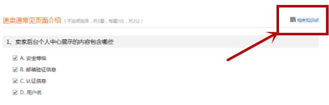 2.速卖通开店考试的题目都是选择题,但是多项选择题,少选不得分!